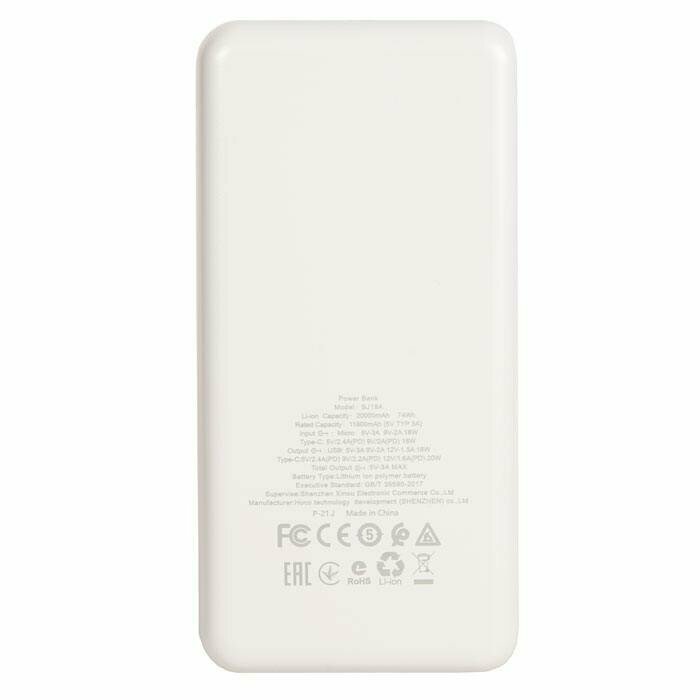 Внешний аккумулятор BOROFONE BJ19A Incredible быстрая зарядка PD20W (20000mAh), белый информация: