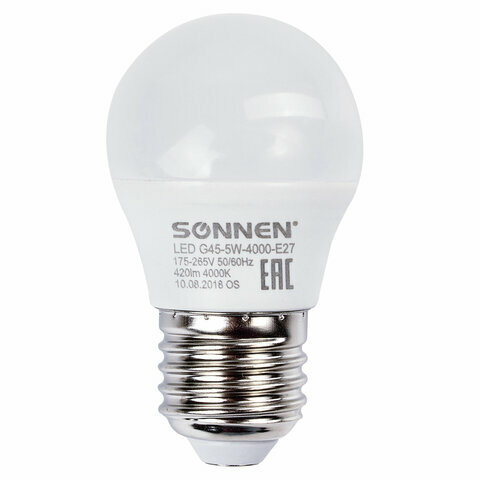Отзывы на Лампа светодиодная SONNEN, комплект 30 шт., 5 (40) Вт, цоколь E27, шар, холодный белый свет, 30000 ч, LED G45-5W-4000-E27, 453700