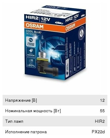 10 цен на Снят с производства Лампа HIR2 12V 55W PX22d COOL BLUE INTENSE цветовая температура 4200К 1 шт.