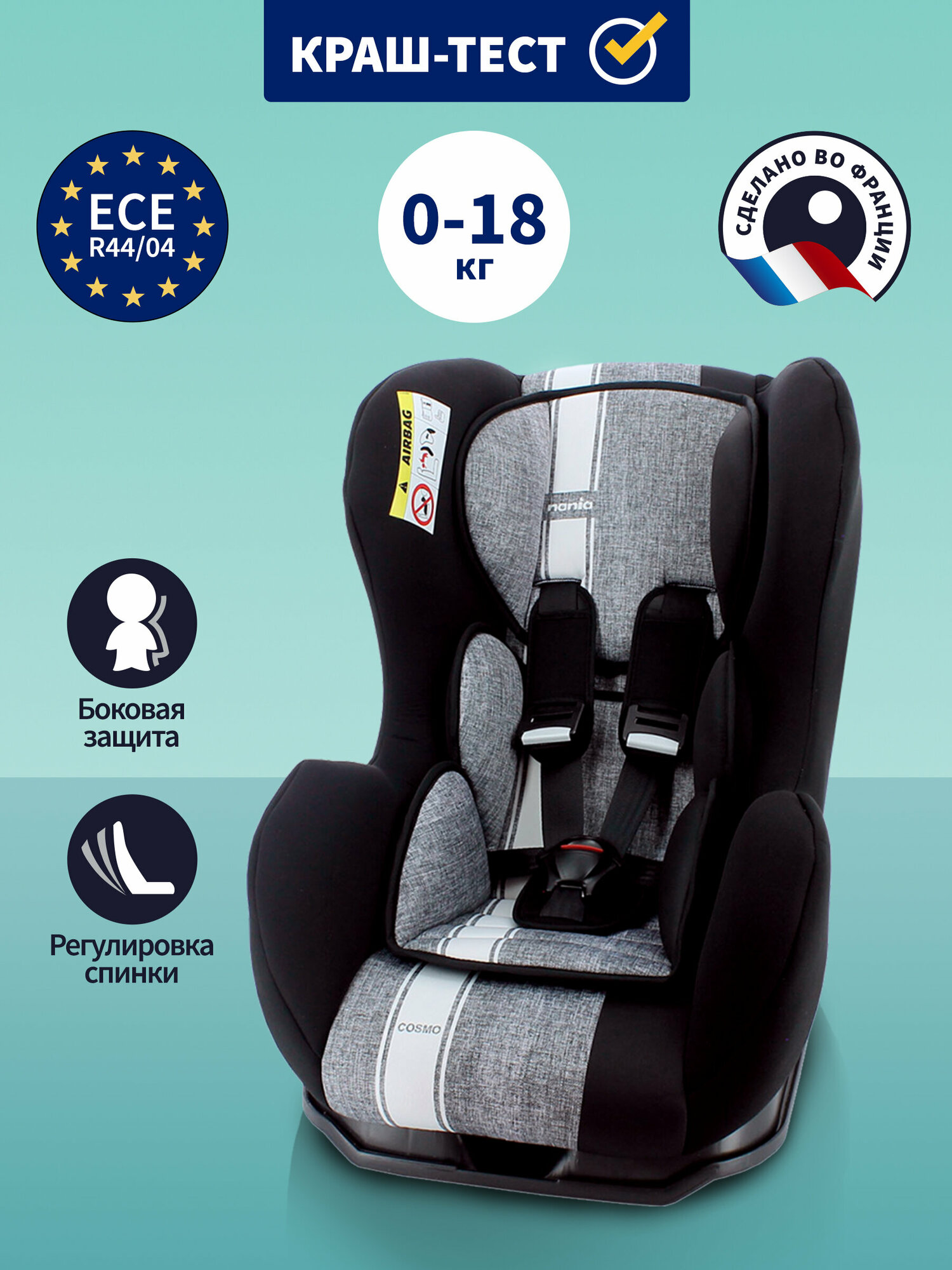 Детское автокресло NANIA COSMO FIRST LINEA Grey с рождения до 4 лет (0 - 18 кг), серый информация: