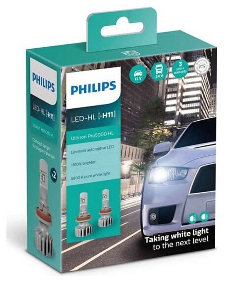 Лампа H11 Ultinon Pro5000 Hl 5800K Led Philips арт. 11362U50CWX2