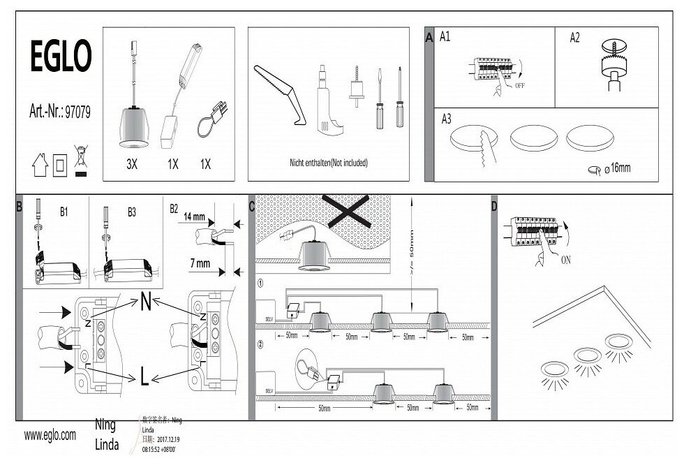 | Комплектация | Встраиваемые светильники Eglo 97079 |
