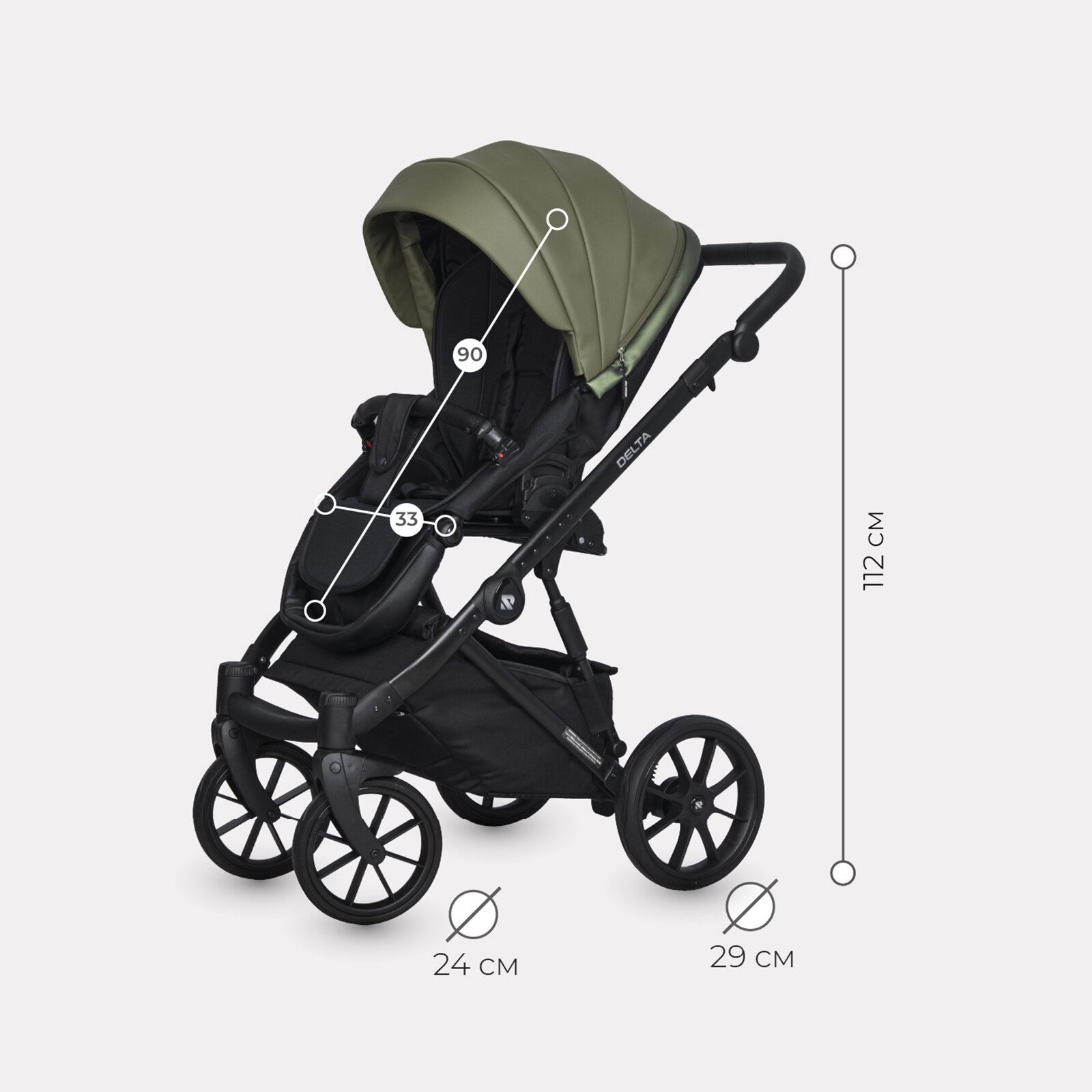 Коляска детская универсальная Riko Basic Delta Ecco 3 в 1, 13 Olive (оливковый) информация: