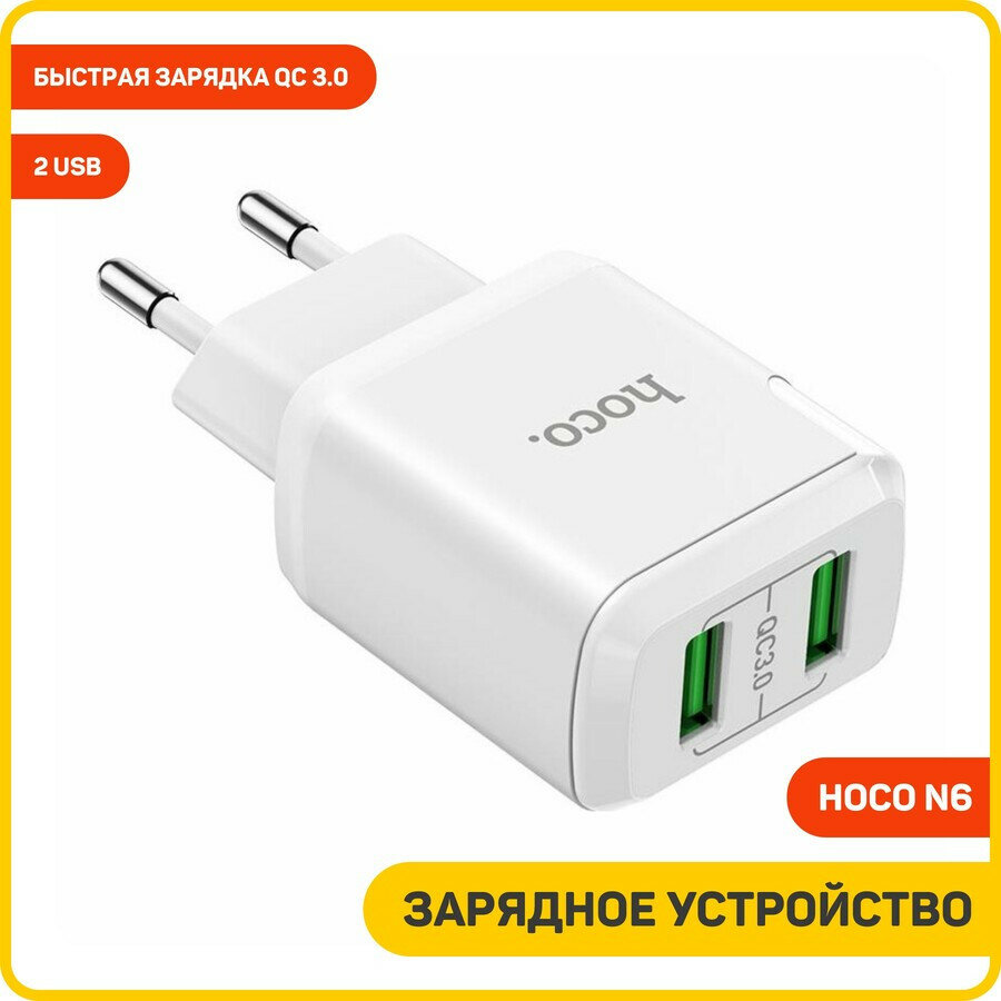 10 цен на Сетевое зарядное устройство Hoco N6, 18 Вт, 2 USB QC3.0 - 3 А, белый