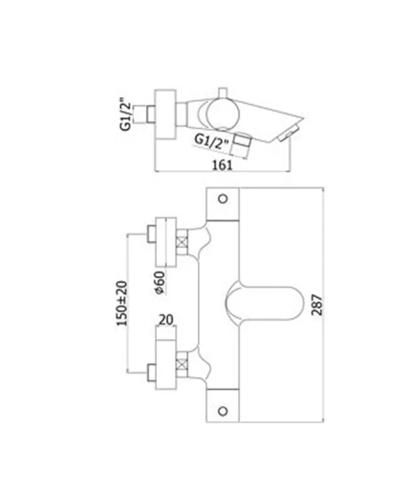 Смеситель Paffoni, серии LIGHT, для ванны термостатический без душ.набора, черный матовый LIQ022NO