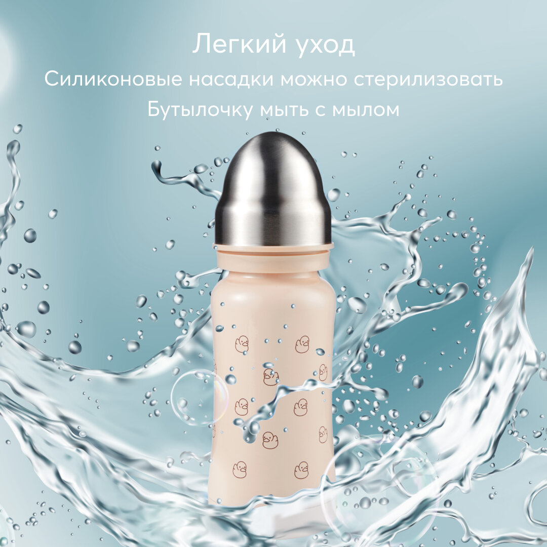 10025, Термобутылочка с 2 сосками Happy Baby, бутылочка для кормления, термос для малышей, 200 мл., бежевый, с уткой информация: