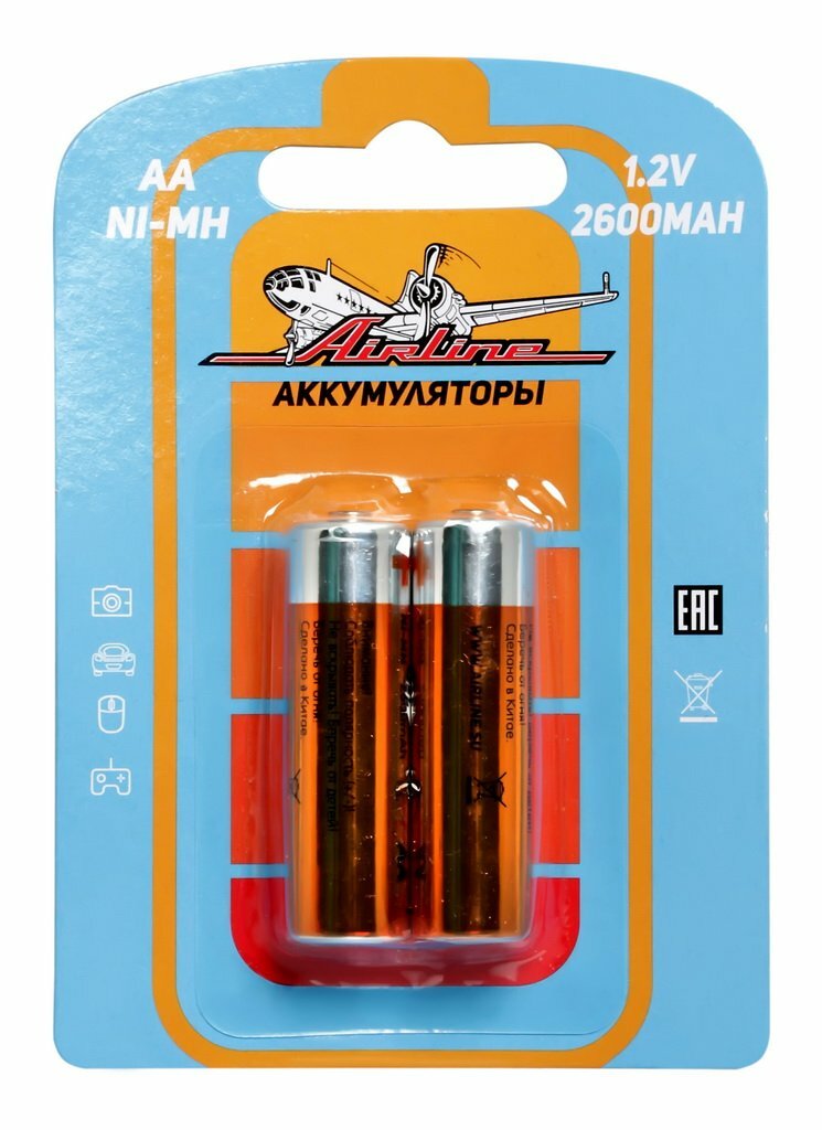 Airline1 AIRLINE Батарейки AA HR6 аккумулятор Ni-Mh 2600 mAh 2шт. (AA-26-02) информация: