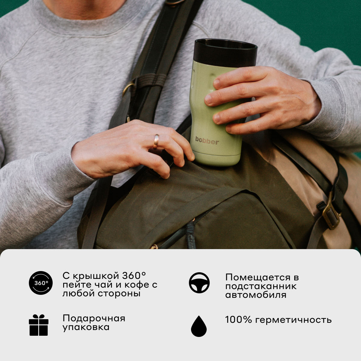 Термокружка для кофе автомобильная 350 мл с крышкой/Bobber Tumbler нержавеющая сталь/в подарочной упаковке 3 943 ₽