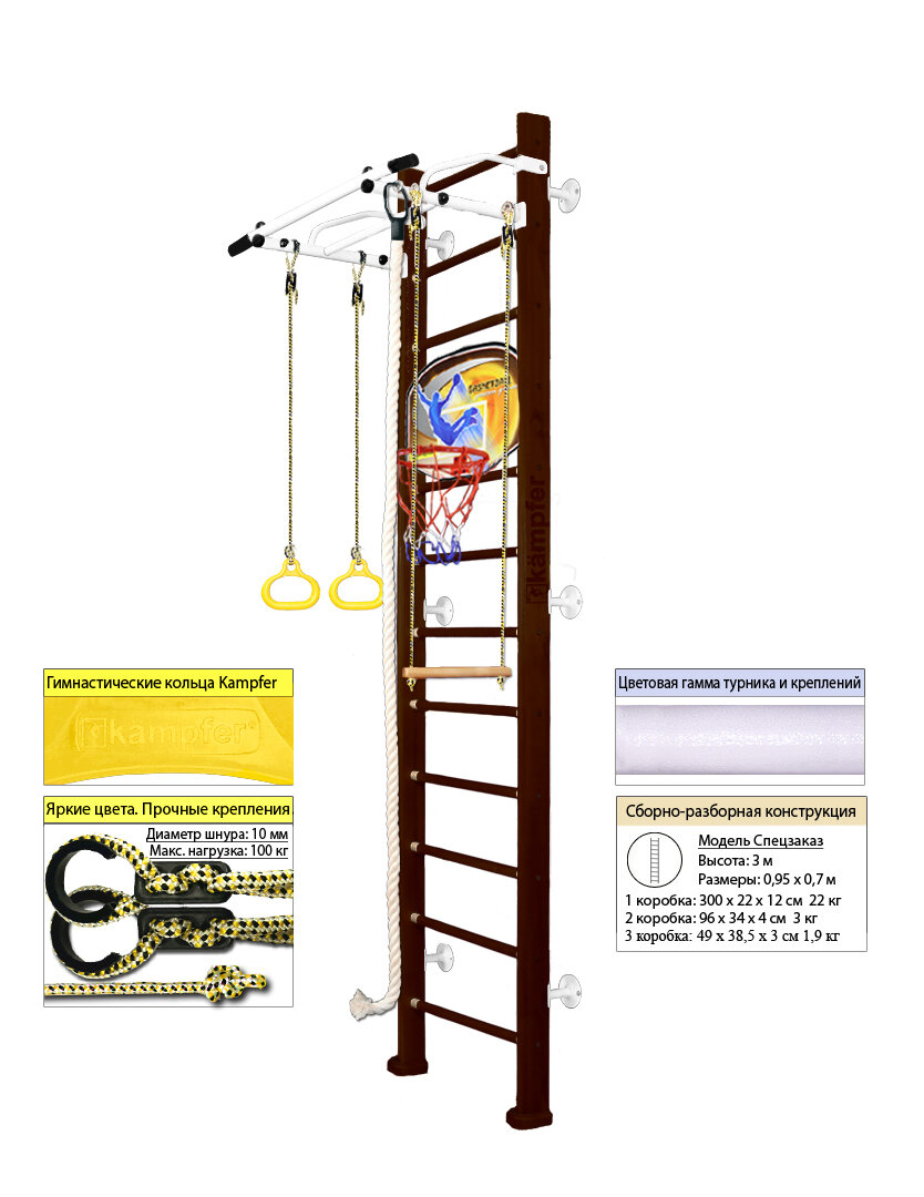 Шведская стенка Kampfer Helena Wall Basketball Shield (№5 Шоколадный Высота 3 м белый антик турник) информация: