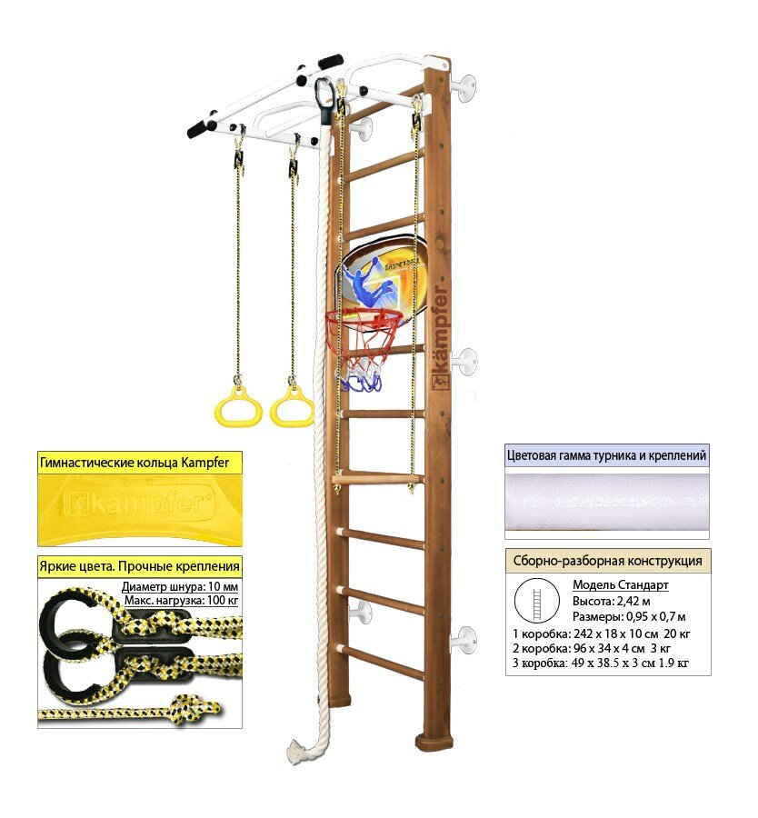 Kampfer "Helena Wall Basketball Shield" спортивно-игровой комплекс 2,4 м. (стандарт) Орех/Белый турник информация: