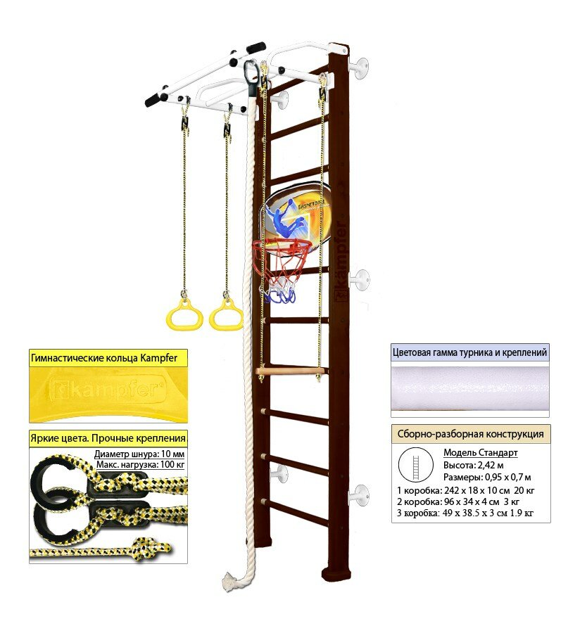 Kampfer "Helena Wall Basketball Shield" спортивно-игровой комплекс 2,4 м. (стандарт) Шоколад/Белый турник информация: