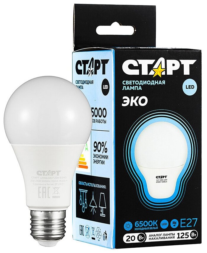Отзывы на Лампа светодиодная LED Старт ECO Груша, E27, 20 Вт, 6500 K, холодный белый свет