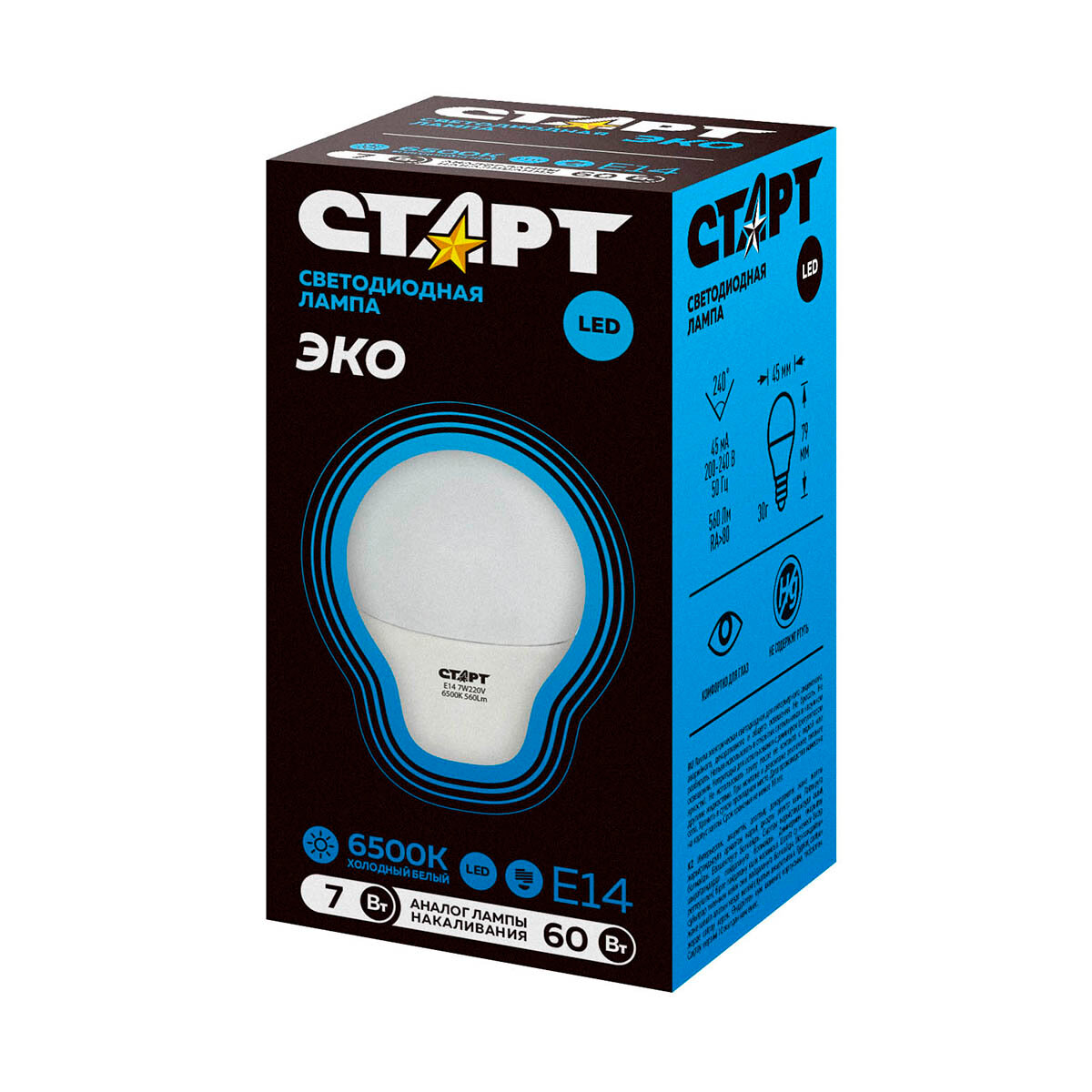 Отзывы на Лампа светодиодная LED Старт ECO Шар, E14, 7 Вт, 6500 K, холодный белый свет