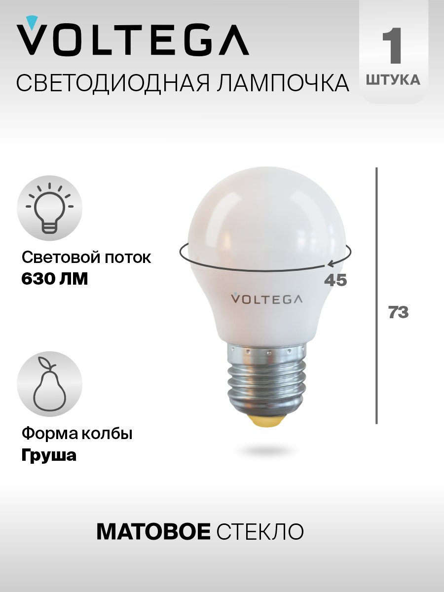 Лампочка светодиодная E27 форма груши 7W нейтральный белый Voltega Simple Globe 4000K упаковка 10 штук 1 485 ₽
