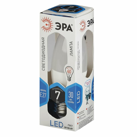 Отзывы на Лампа светодиодная ЭРА, комплект 30 шт., 7 (60) Вт, цоколь E27, "свеча", холодный белый свет, 30000 ч., LED smdB35-7w-840-E27