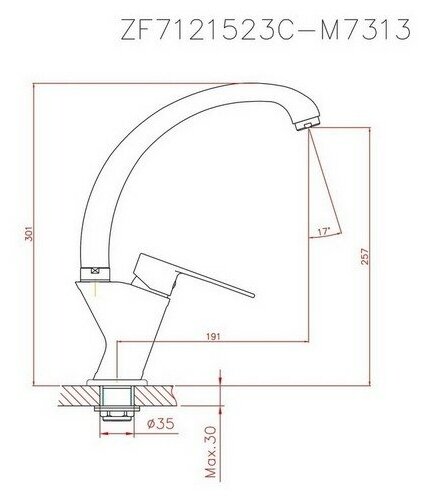 Смеситель для кухни 35к CN70523 CRON высокий пов. излив, п/гайку, хром информация: