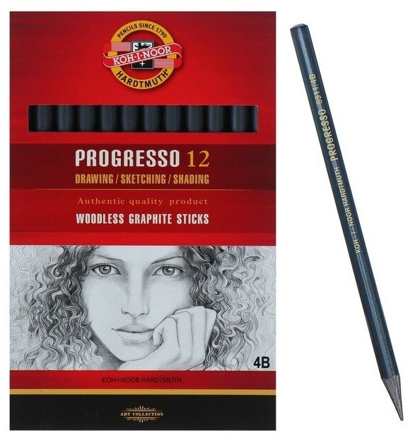 Набор карандашей чернографит. Koh-I-Noor Progresso 8911 891104B004PZ 4B шестигран. корпус черный цельнографитный в лаке коробка картонная