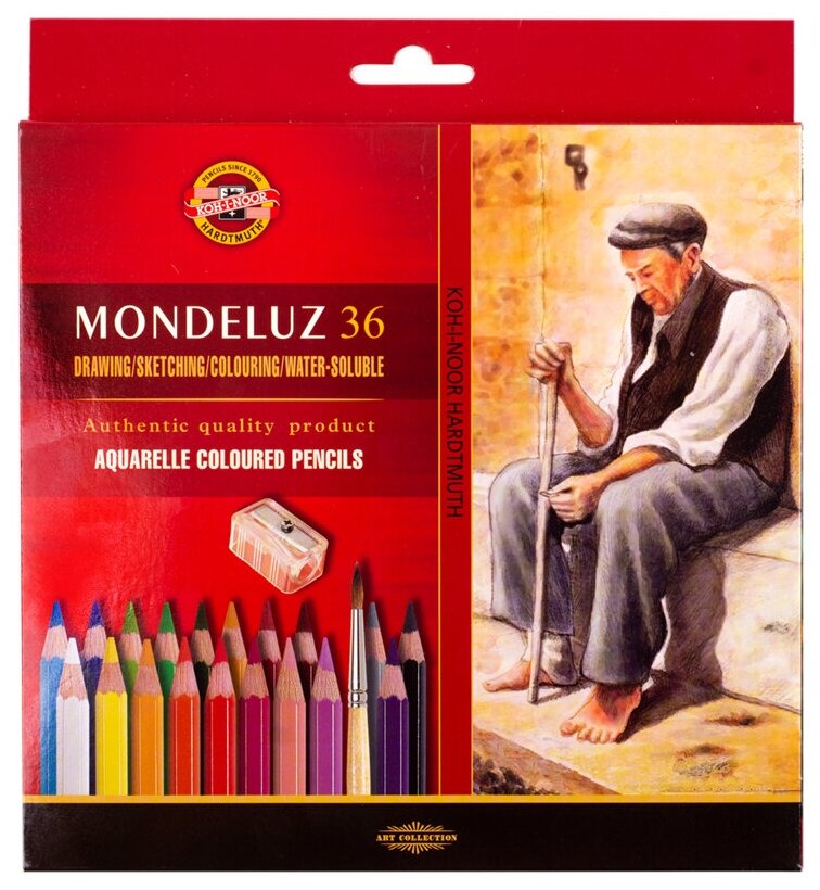 Акварельные карандаши KOH-I-NOOR Набор карандашей акв. худож. "Mondeluz" KOH-I-NOOR, 36цв., кисти, точилка (картон. коробка)