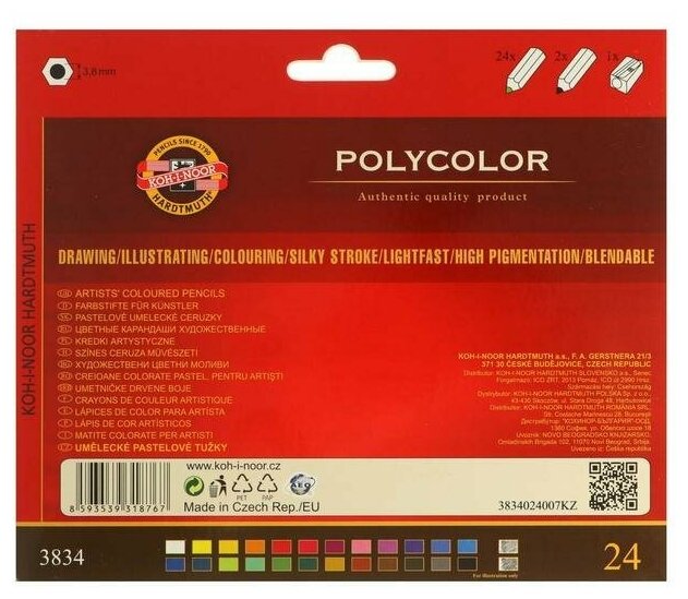 Koh-I-Noor Карандаши 24 цвета Koh-I-Noor 3834 POLYCOLOR 3834, картонная упаковка, европодвес информация: