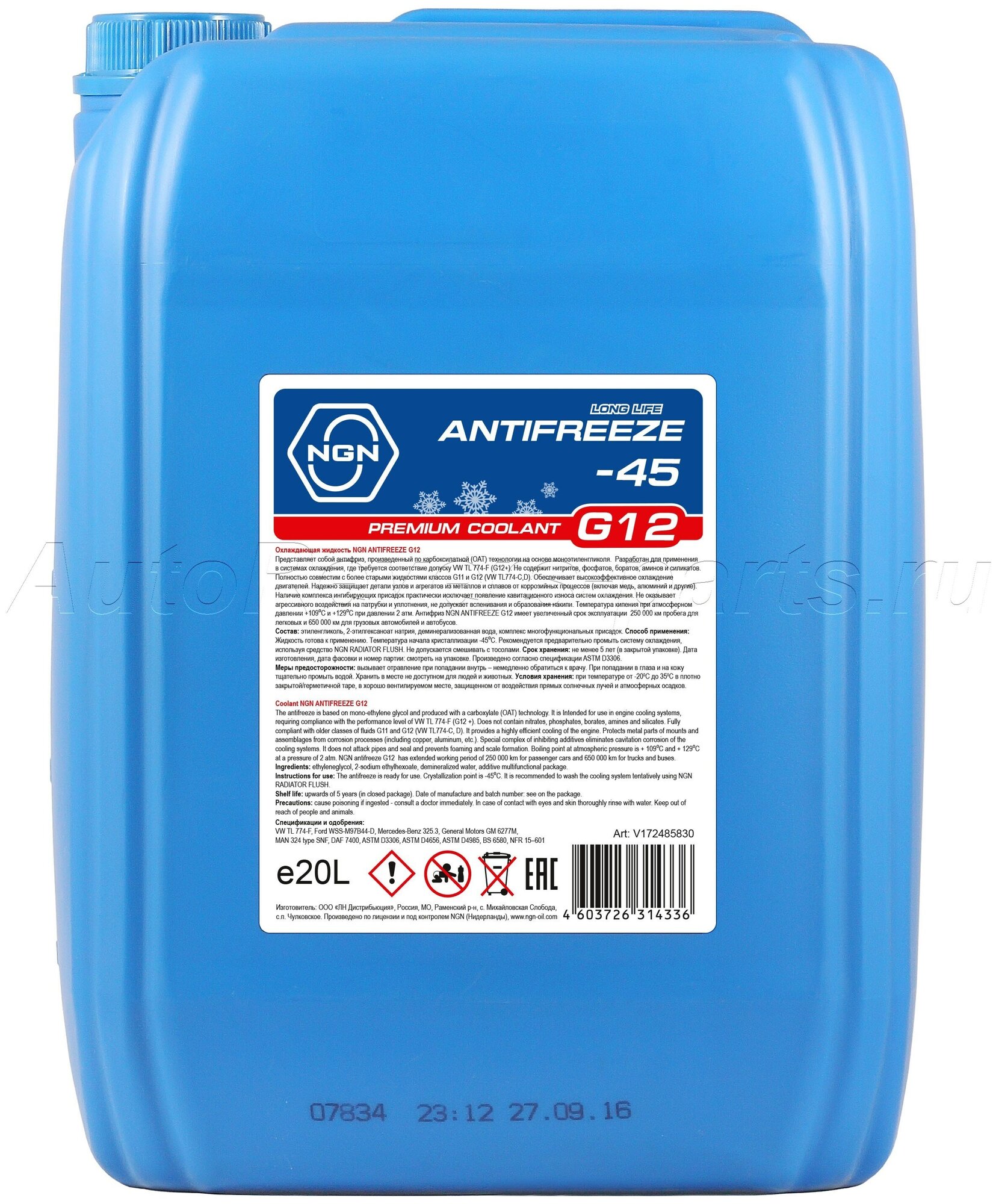 Антифриз, Готовый Раствор G12 -45 Красный 20л Ngn Арт. V172485830 NGN арт. V172485830