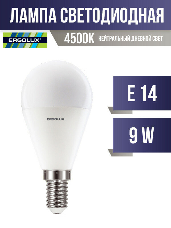 Отзывы на Ergolux шар G45 E14 9W(780lm 220°) 4500K 4K матовая 92x45 пластик/алюм. LED-G45-9W-E14-4K (арт. 659303)