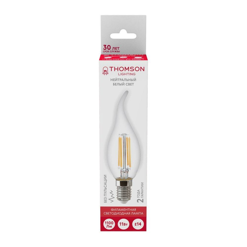10 цен на Thomson Лампа светодиодная филаментная Thomson E14 11W 4500K свеча на ветру прозрачная TH-B2080