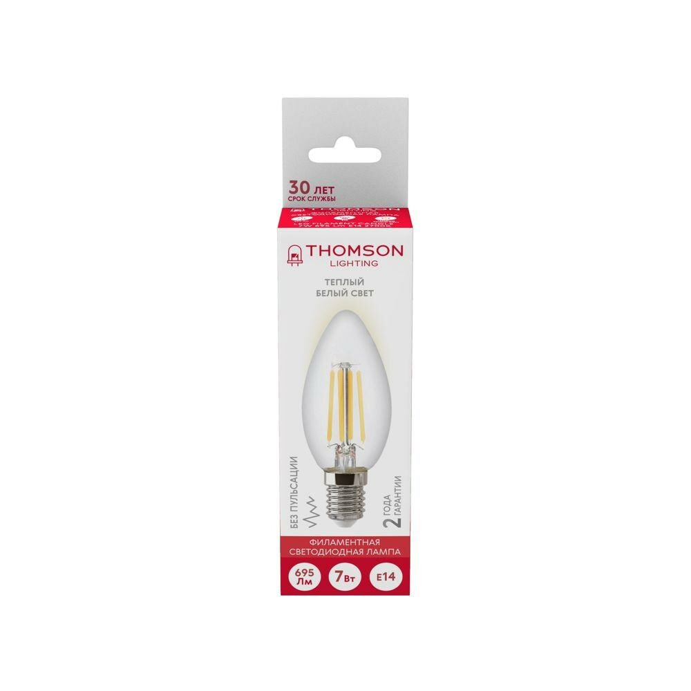 Лампа филаментная Thomson E14, свеча, 7Вт, 2700К, белый теплый, 1 шт.