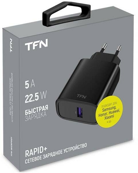 Сетевое зарядное устройство TFN 5A 22,5W QC 3.0 черное (TFN-WCRPD01) информация: