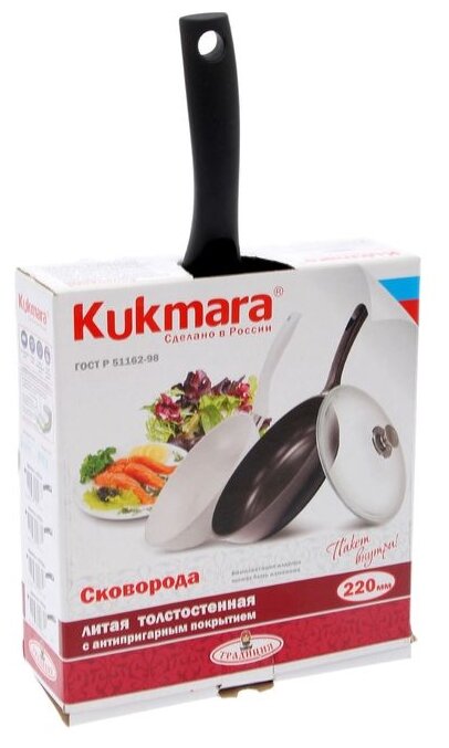 Сковорода Kukmara "Традиция", 22х6 см, стеклянная крышка, утолщенное дно, антипригарное покрытие
