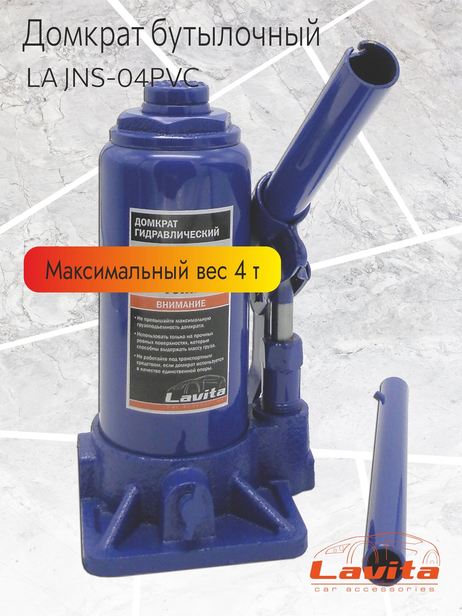 10 цен на Домкрат бутылочный гидравлический LAVITA, LA JNS-04PVC, 4Т; Min:180-Max:350; Пластиковый кейс
