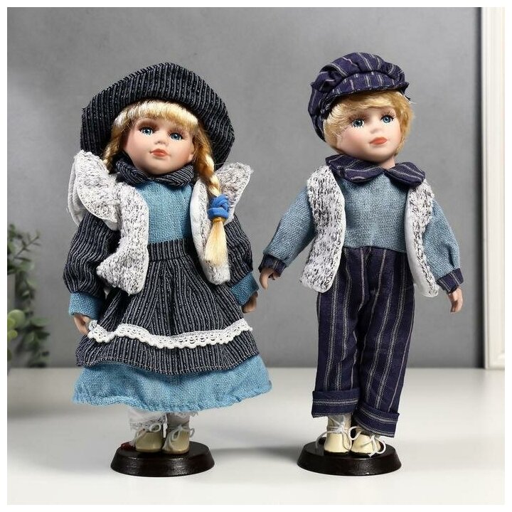 Кукла коллекционная парочка набор 2 шт "Алиса и Артём в синих нарядах" 30 см информация: