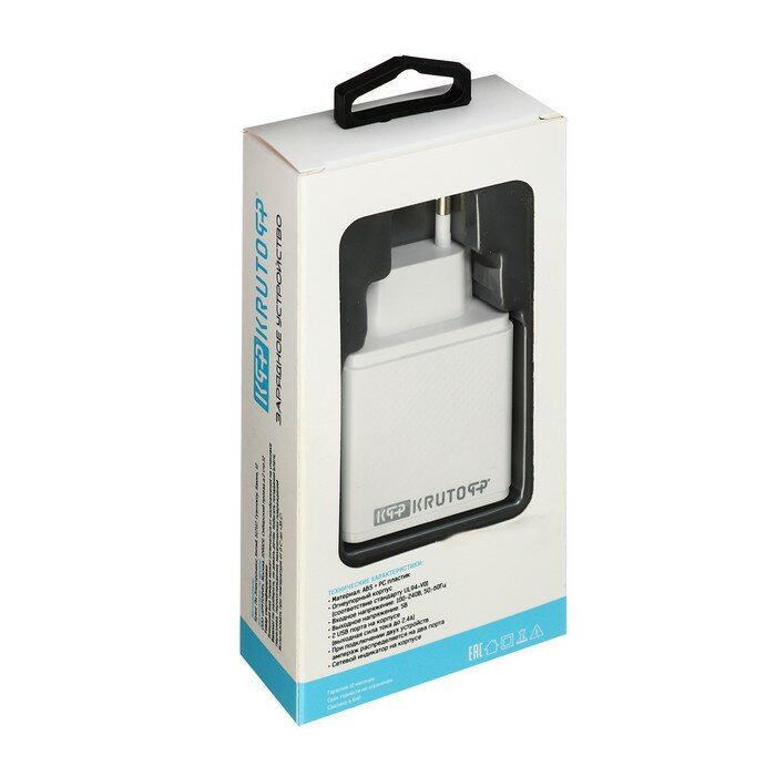 Отзывы на Сетевое зарядное устройство Krutoff, 2 USB, 2.4 A, белое./В упаковке шт: 1