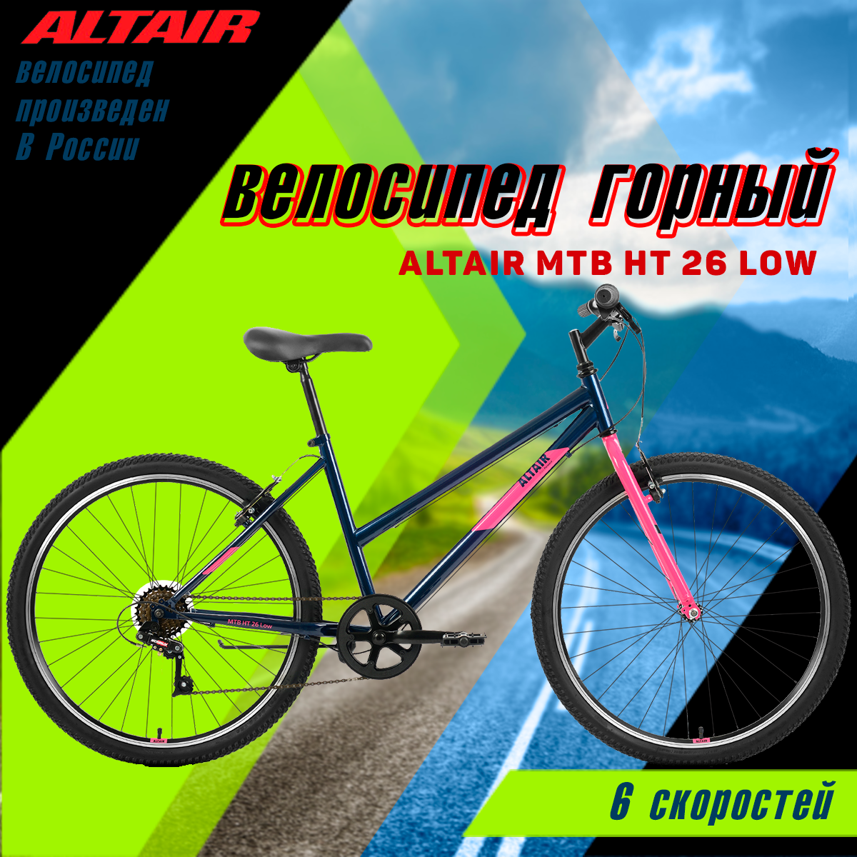 Женский велосипед Altair MTB HT 26 low (26" 6 ск. рост. 17") 2022, темно-синий/розовый, IBK22AL26123 18 000 ₽