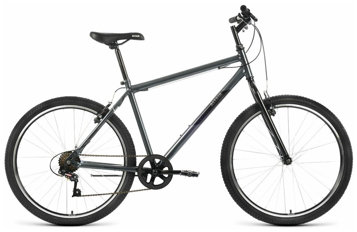 Велосипед ALTAIR MTB HT 26 1.0 (26" 7 ск. рост. 19") 2022, темно-серый/черный, RBK22AL26106