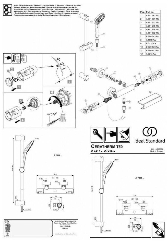 Смеситель IDEAL STANDARD CERATHERM A7217AA для душа информация: