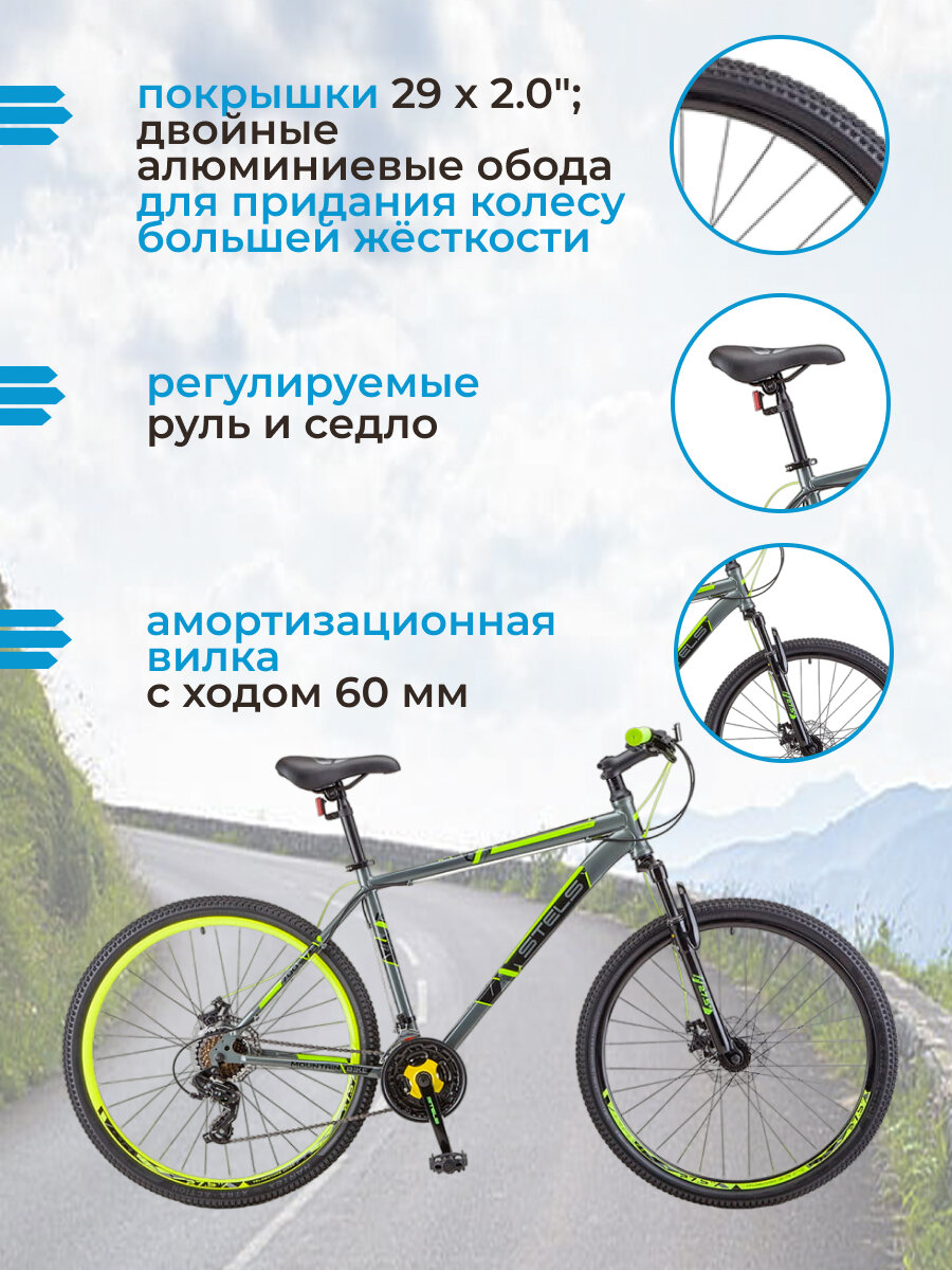 10 цен на Велосипед горный с колесами 29" Stels Navigator 900 D F020 серый/жёлтый 29" рама 17,5" 21 скорость