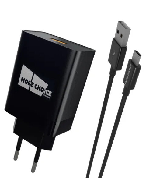 Зарядное устройство More Choice NC52QCm 1xUSB 3.0A QC3.0 + кабель MicroUSB Black 4627151195261 информация: