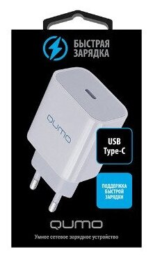 Сетевое зарядное устройство QUMO Energy light (Charger 0051) PD 20W, 1USB Type-C, белый информация: