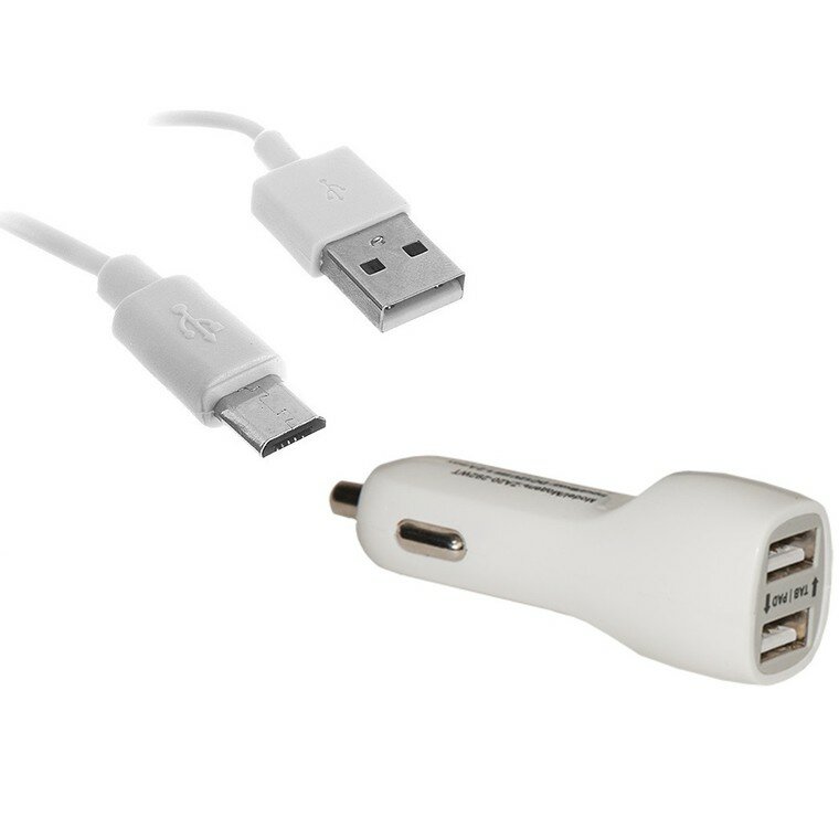 Зарядное устройство автомобильное Continent белый 2,4A/2*USB ZA20-292WT/S1(3) с кабелем microUSB бокс информация: