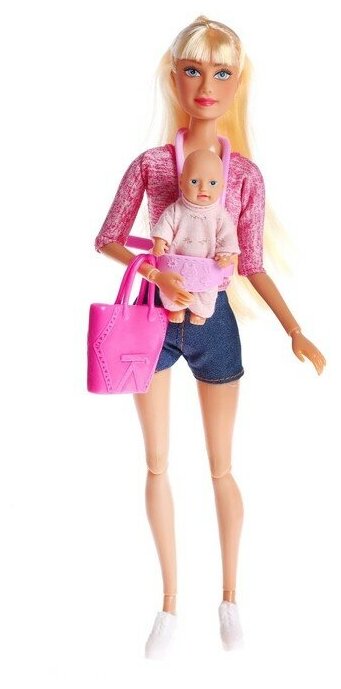 10 цен на Кукла модель Молодая мама, с пупсом, с аксессуарами, цвет розовый 7878698 .