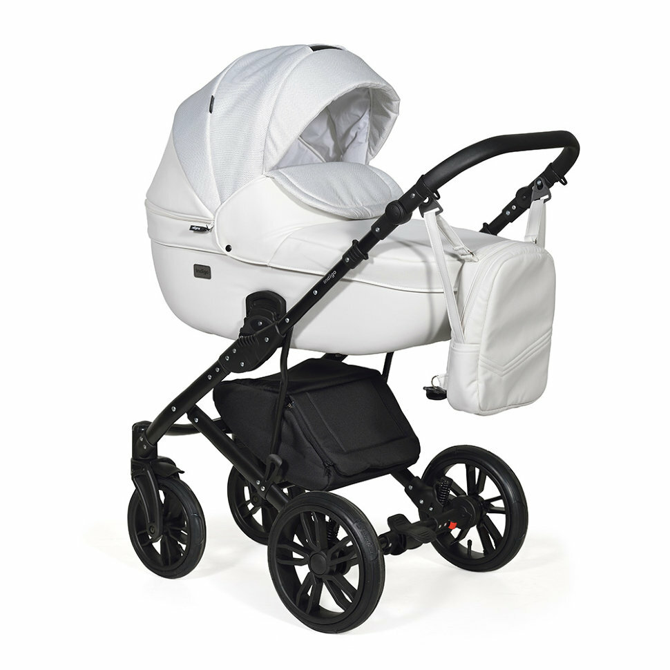 Коляска 3 в 1 Indigo Mio F, Mi 01 белая кожа/белый узор информация: