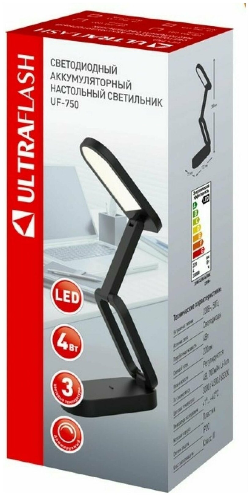 Настольная лампа ULTRAFLASH LED UF-750 C02 черный (220 В, аккумулятор) 535 ₽