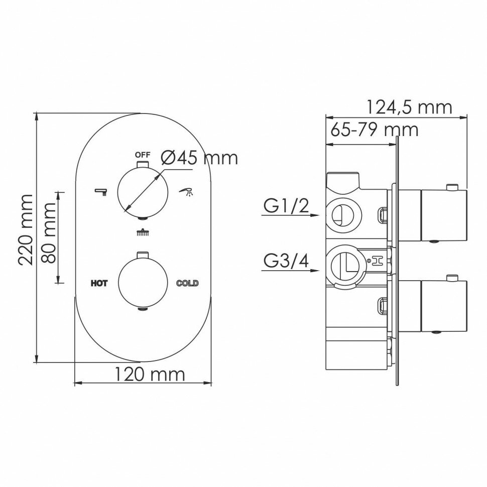 | Дополнительная информация | для термостатических смесителей подключение горячей воды только слева, холодной воды только справа; переключатель на 3 выхода |