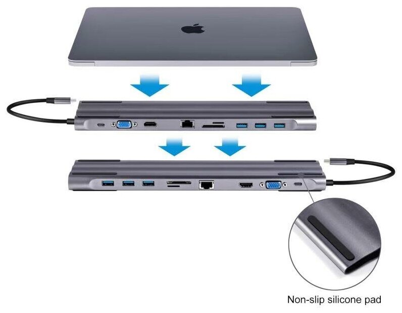 Отзывы на Хаб USB-концентратор 10 в 1 (PD+VGA+HDTV+ Ethernet+TF/SD+3xUSB3.0+Audio&Microphone) Multifunctional Type-C Gray