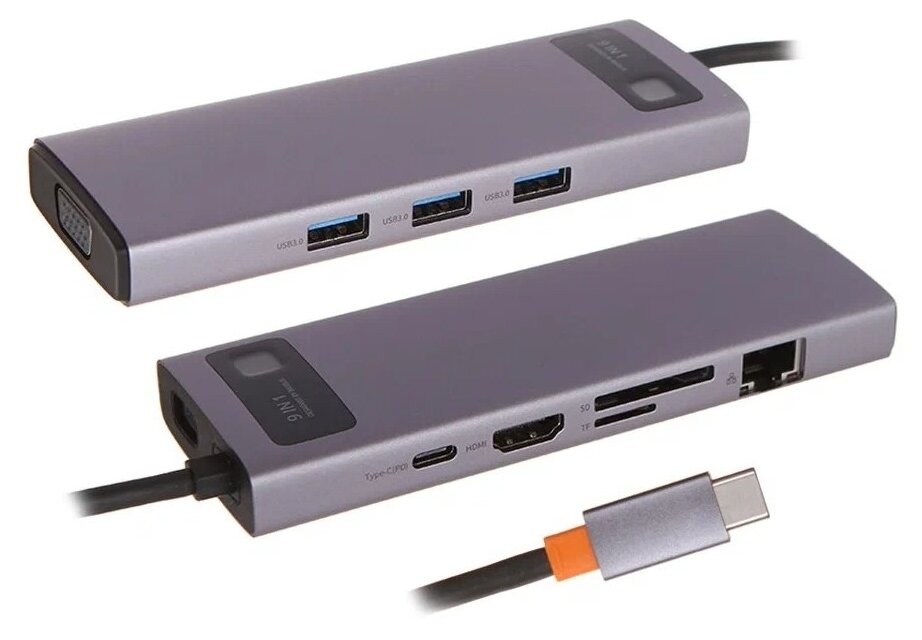 USB-C хаб Baseus 9-in-1 Multifunctional HUB PD 100W SD/Micro SD 3USB/1USB-C/1HDMI 4K 30Hz/VGA/1Ethernet тёмно-серый CAHUB-CU0G