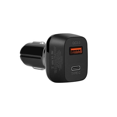 Зарядное устройство а/м 12V -> Type-C (F) + USB (F), Hoco Z15 QC 3.0, 3A, черное информация: