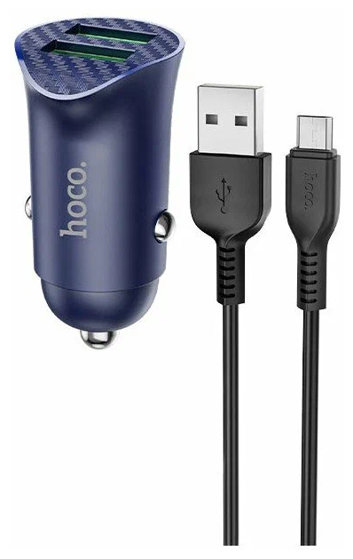 Автомобильное зарядное устройство (АЗУ) Hoco Z39 QC 3.0 (2 USB) + кабель MicroUSB, 3 А, синий