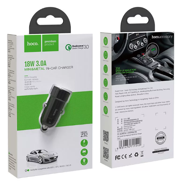 Автомобильное З/У HOCO Z32 1USB 3.0A QC3.0 серый информация: