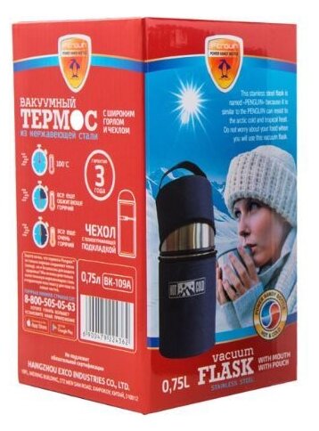 Penguin Вк-109а Термос с ш/г 0,75 л с теплоизолирующим чехлом и инд коробке . 1 392 ₽