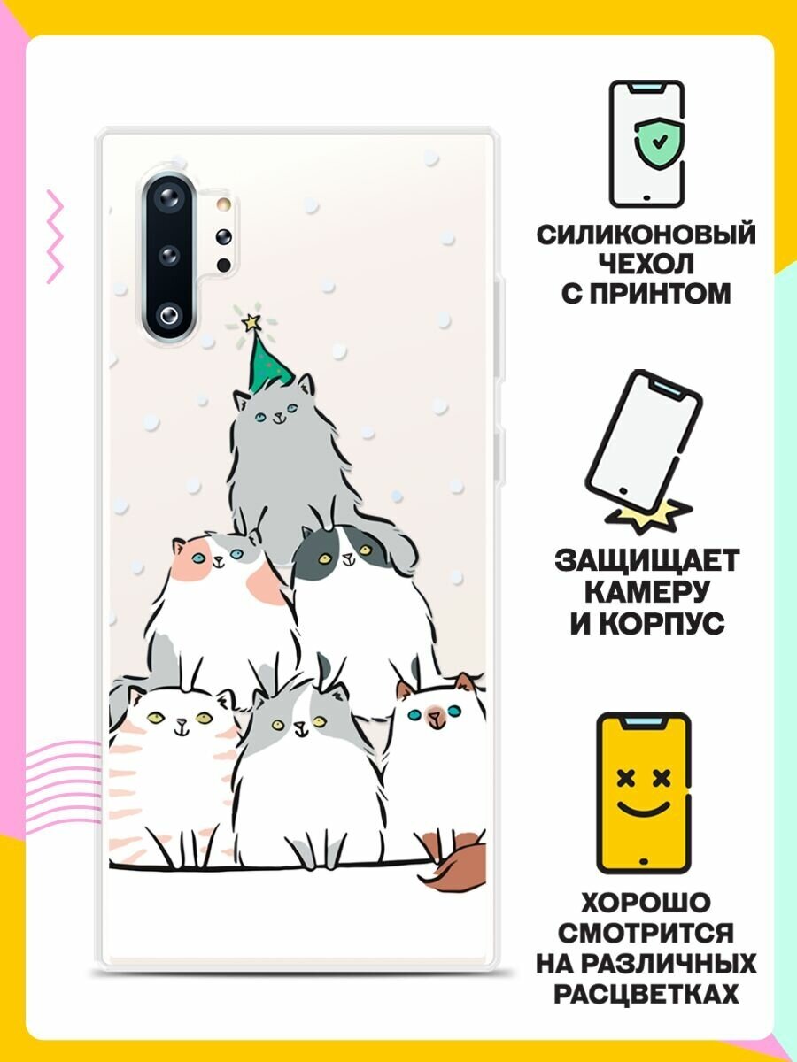 Силиконовый чехол на Samsung Galaxy Note 10+ Елка из котов / для Самсунг Галакси Ноут 10 Плюс информация: